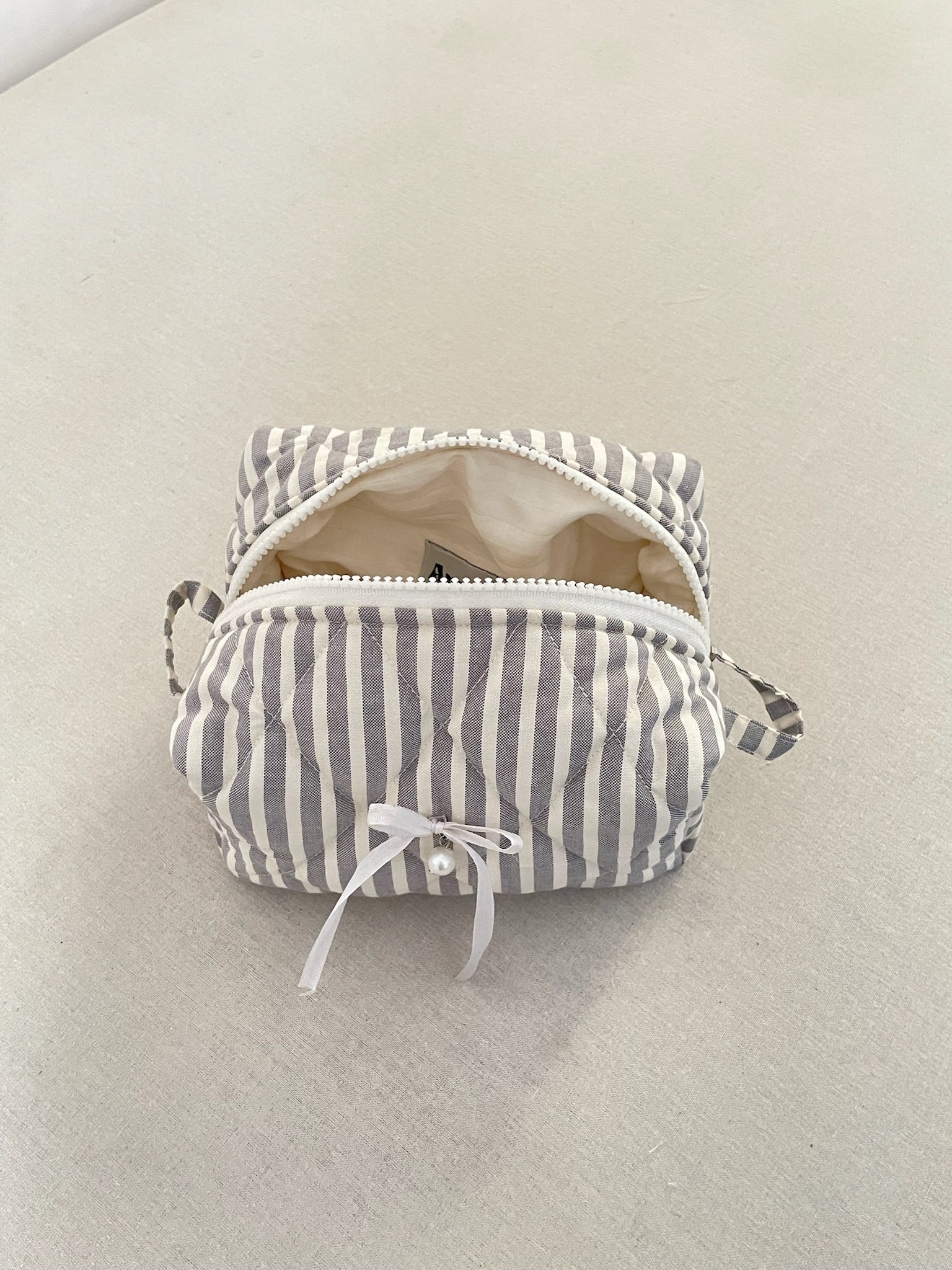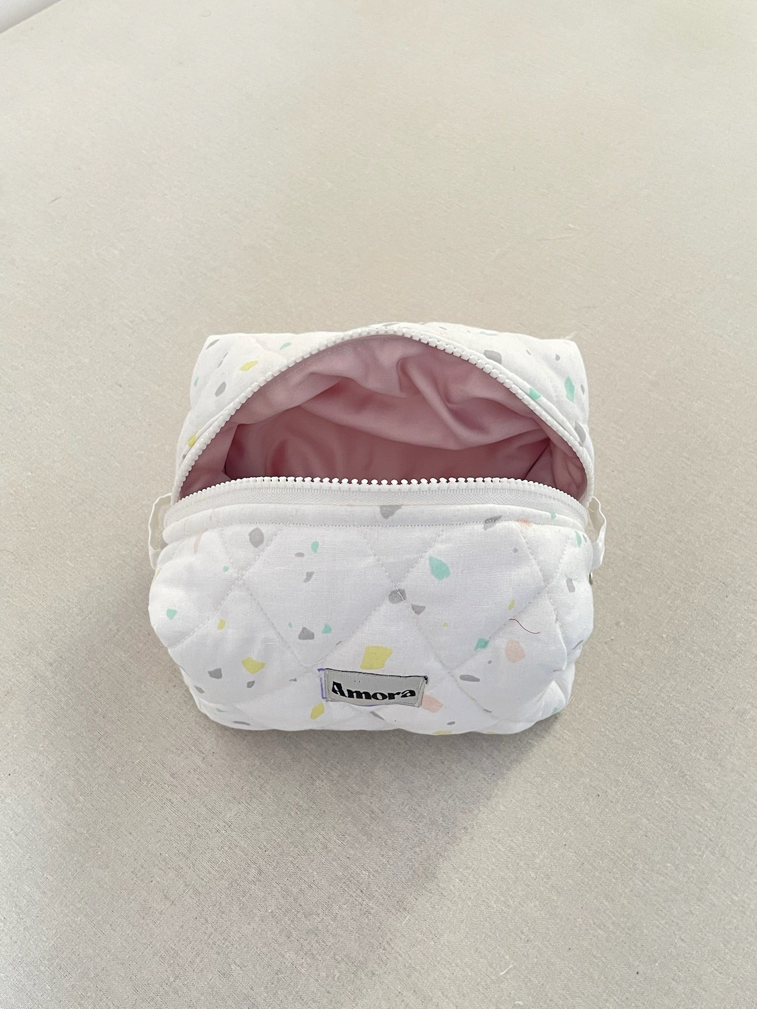Meet your everyday carry for beauty, travel, and desk organization. Made with a 100% cotton outer, 100% cotton lining, and soft quilted padding, this pouch keeps your essentials protected while staying lightweight and breathable.