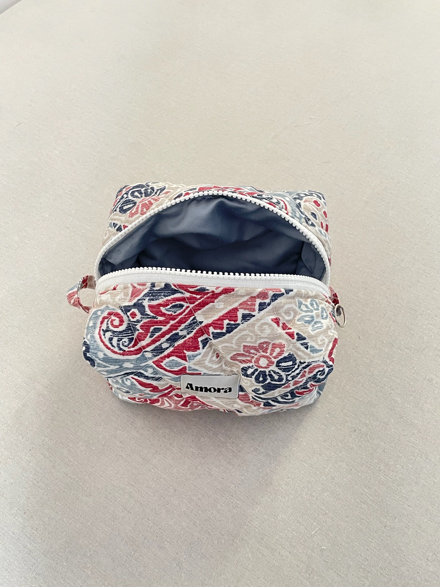 1 × Quilted Cotton Makeup Pouch (Assorted Print – Random Pick)