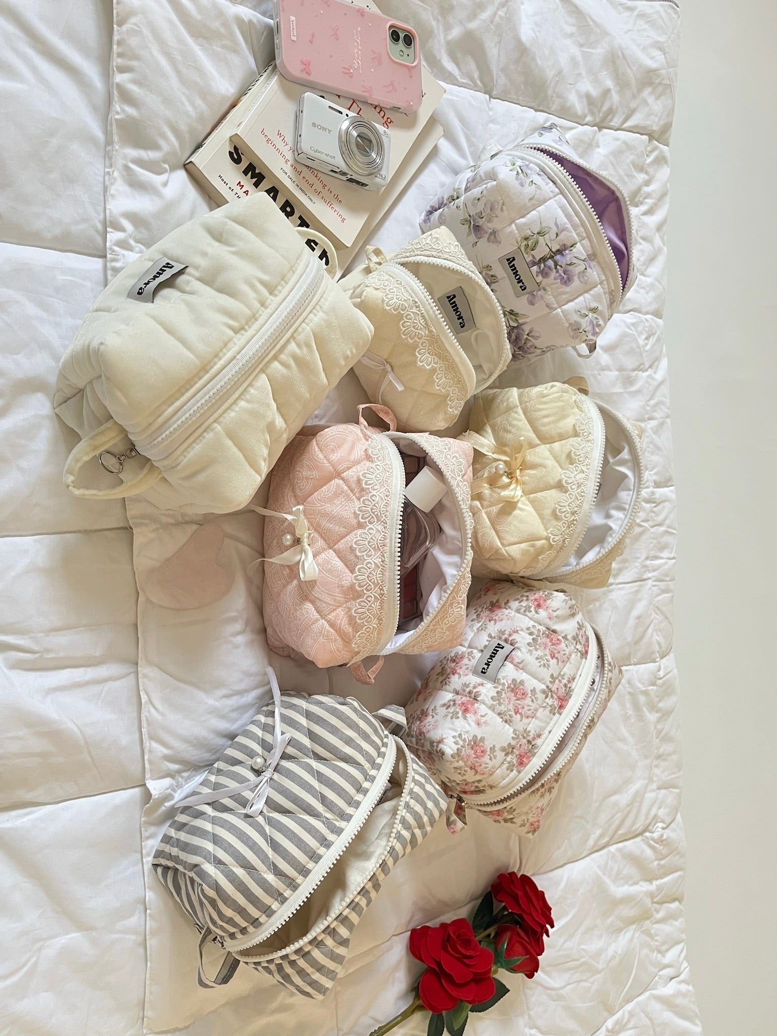 Cotton’s breathable fibers help reduce trapped moisture and odors—especially useful for brushes, skincare, and travel storage. The quilted structure adds soft protection without extra weight.