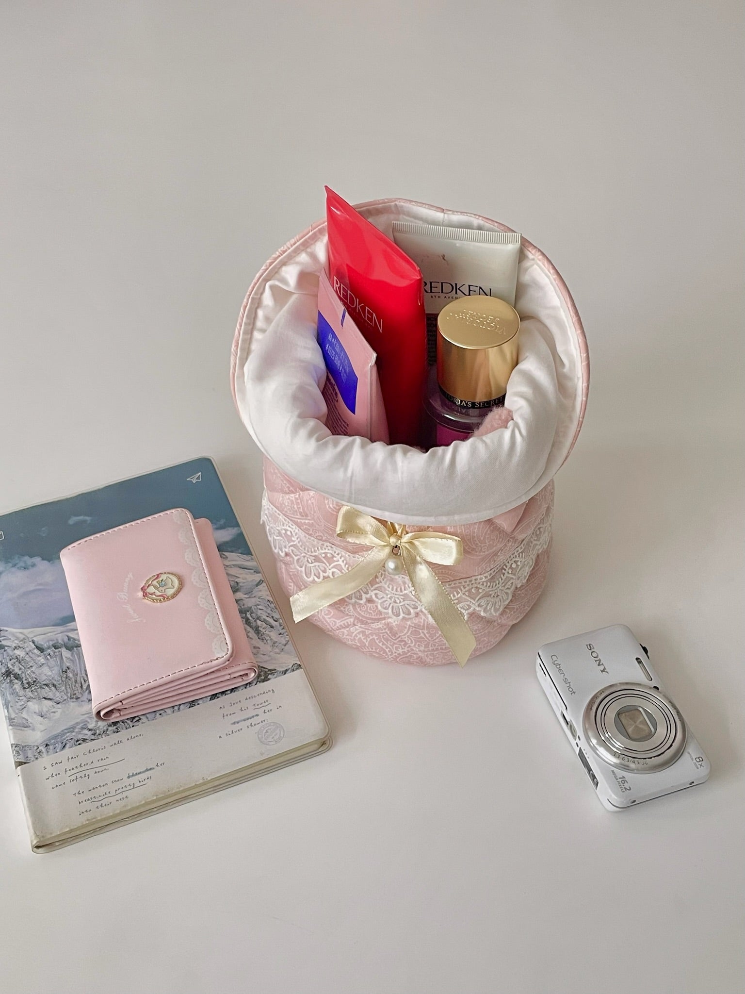 A soft, romantic vanity bag to keep your daily essentials together – from skincare and makeup to scrunchies and little keepsakes.